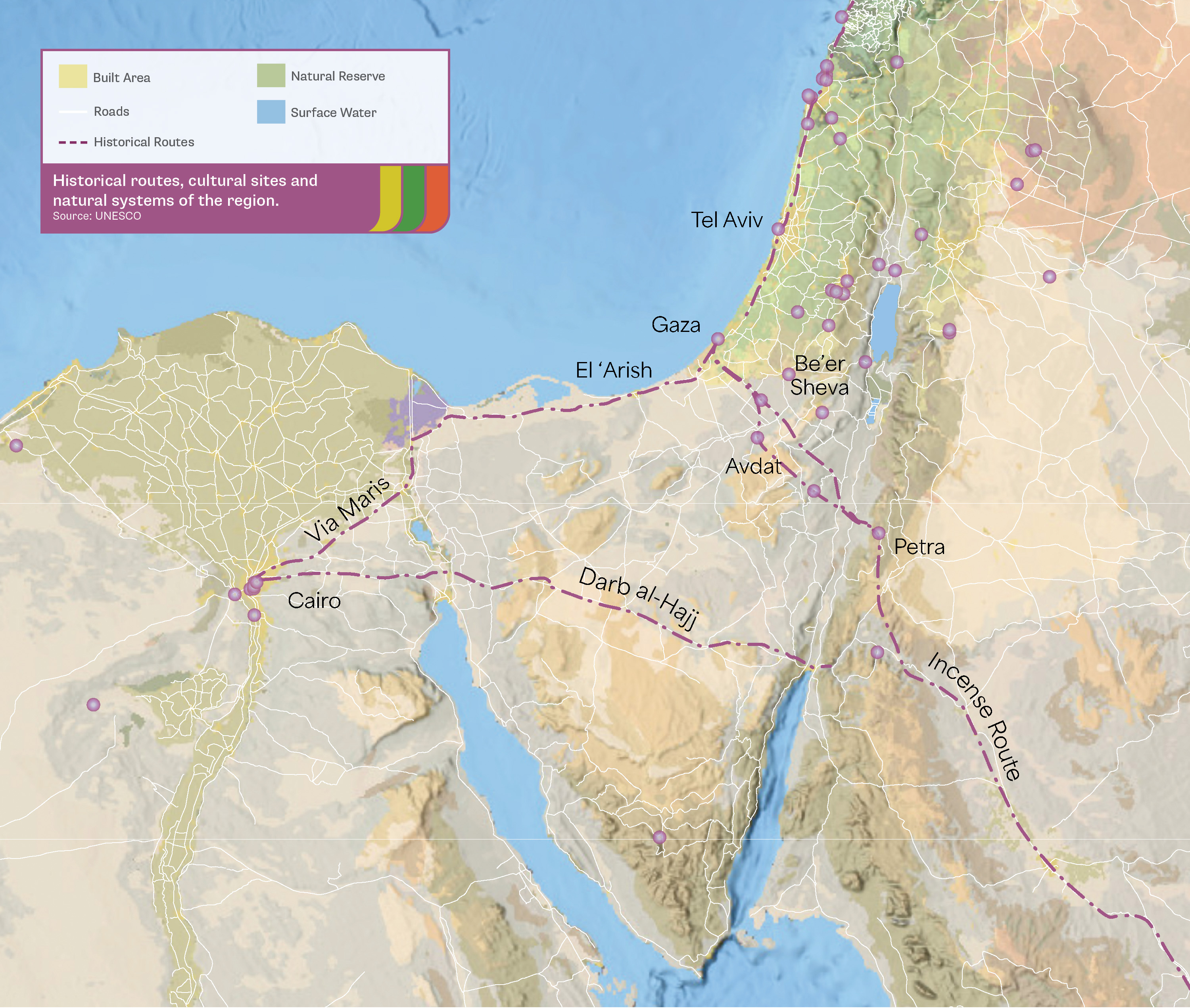 Map: Historical routes, cultural sites and natural systems of the region