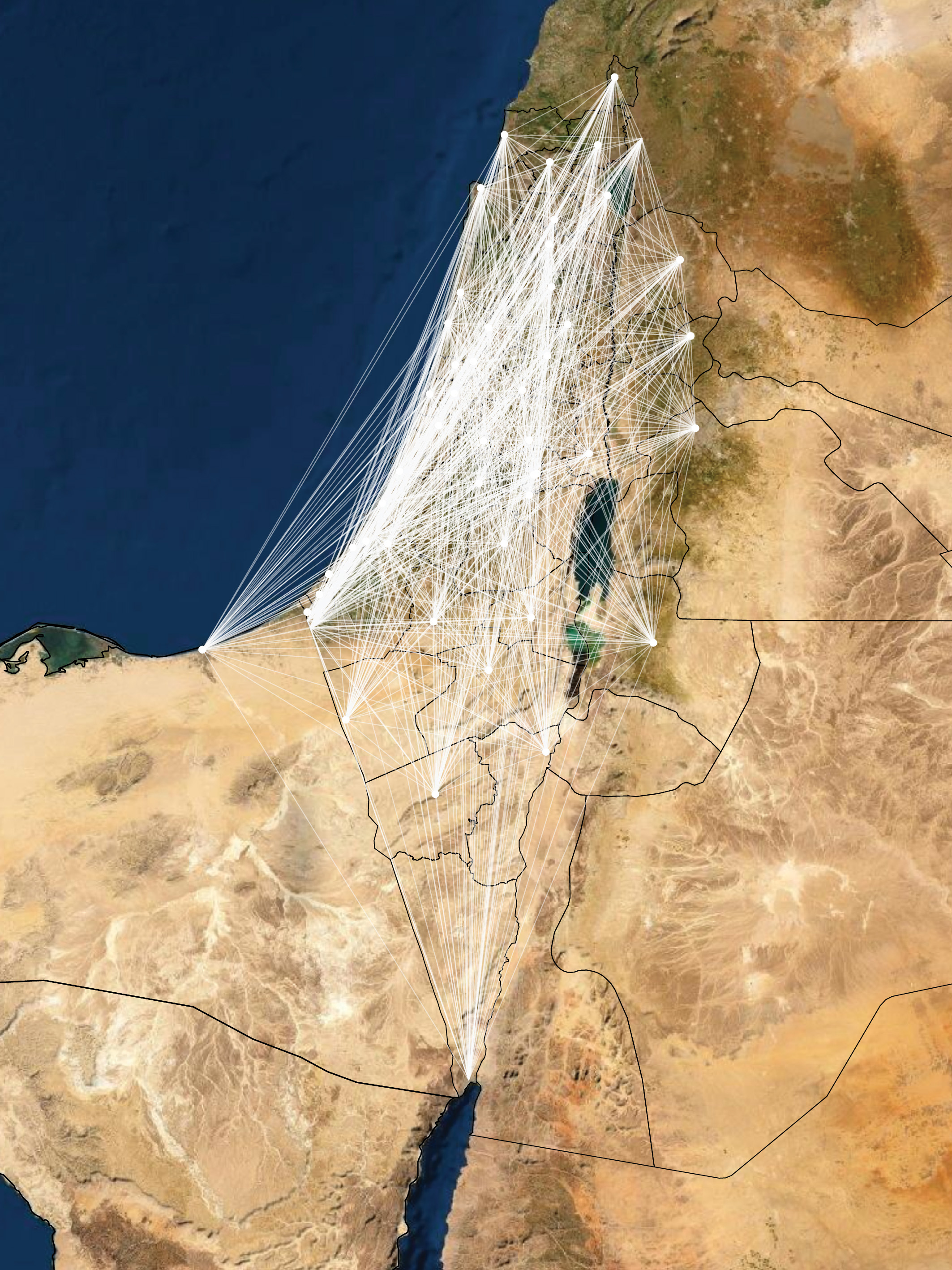 Map: Projected connectivity of peace and cooperation in the region, based on urban modeling