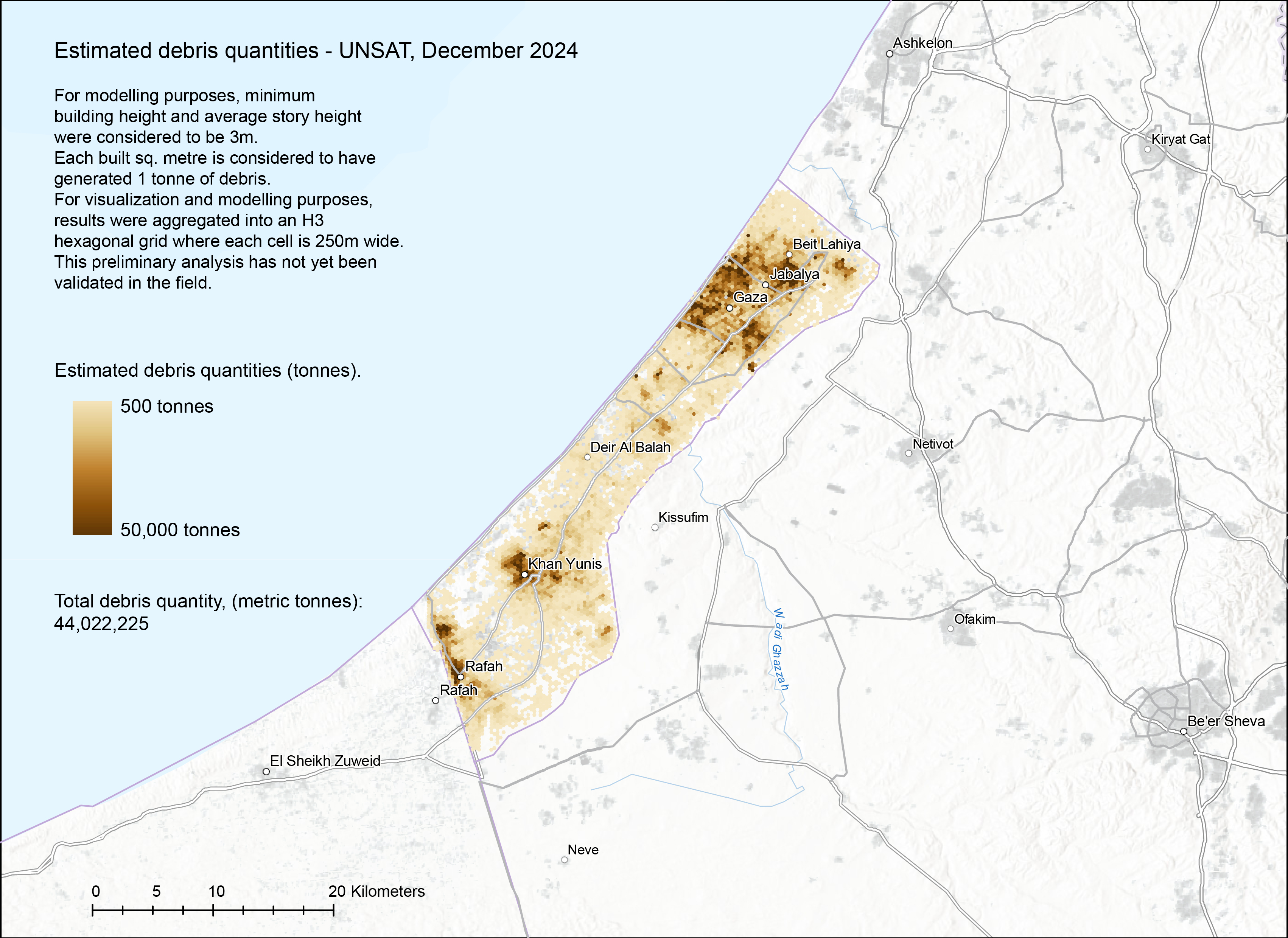 Map: Estimated debris quantification, based on UNSAT, December 2024